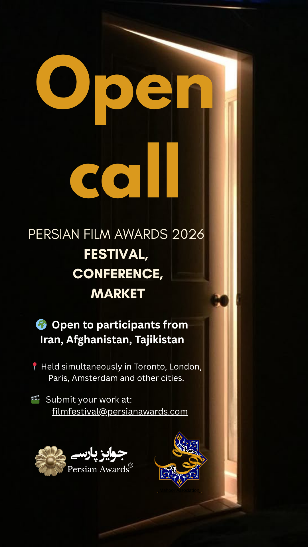 We invite filmmakers, photographers, and screenwriters from Afghanistan, Iran and Tajikistan to submit their works or join us as collaborators in organizing the Persian International Film Festival 2026.